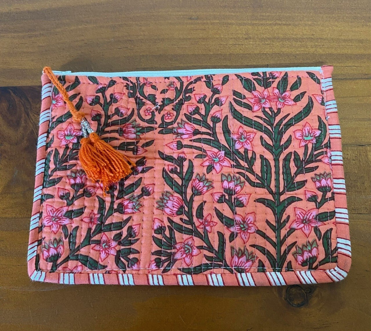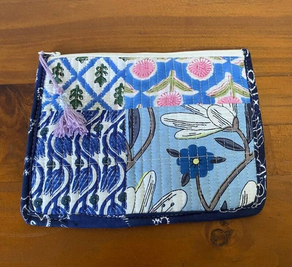 These small block-printed pouches are perfect for organising your everyday essentials. They make a beautiful and practical addition to your large quilted tote bag.